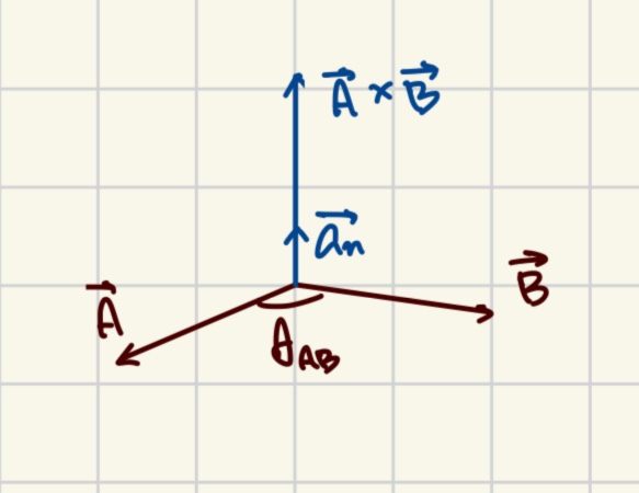 $$\vec{A}\times\vec{B}=\vec{a_{n}}\left| AB\sin{\theta_{AB}}\right|$$
